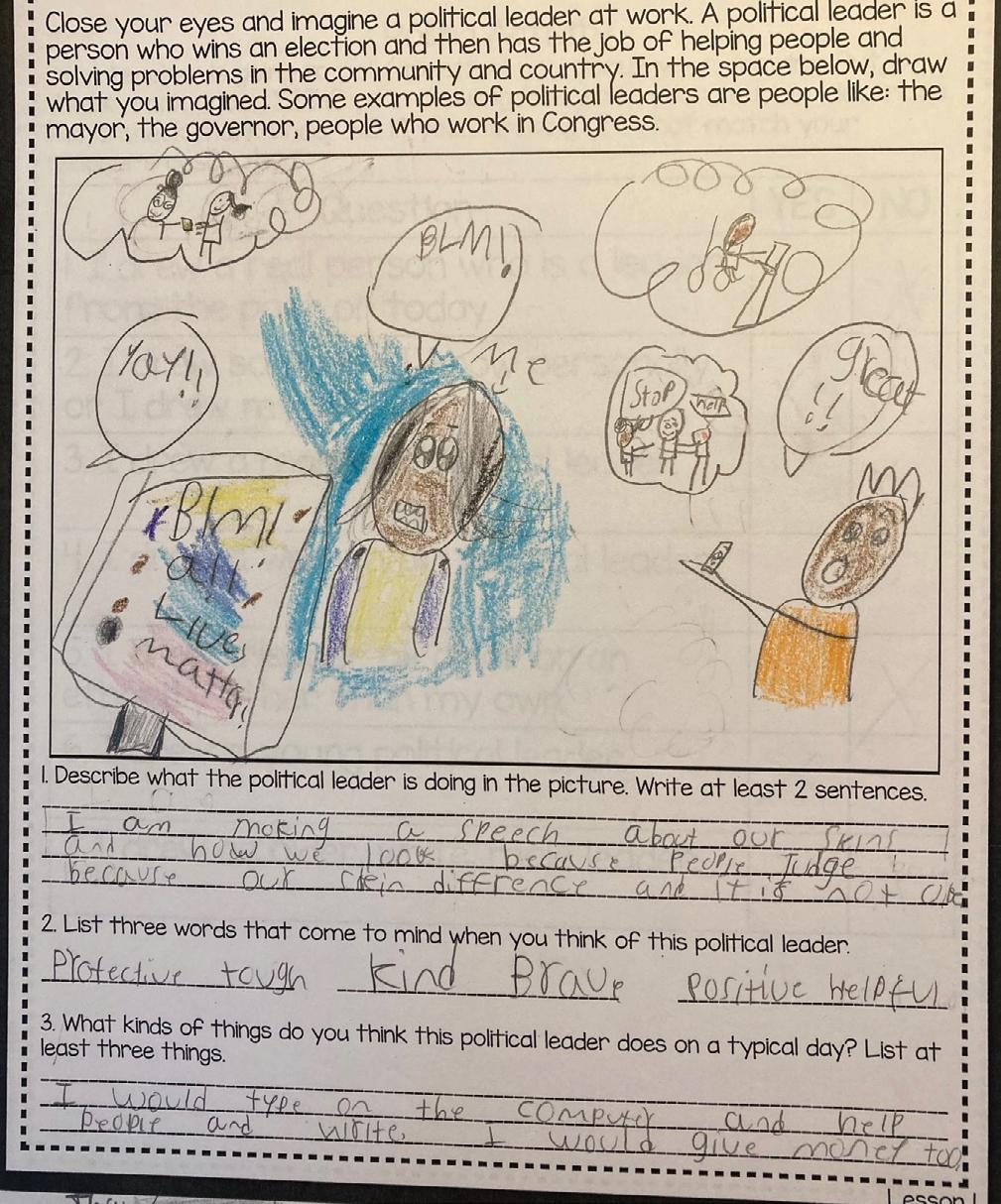 influencing who gets involved in politics later in life. Changes to school curricula, such as expanding instruction around political leaders from marginalized groups and expanding notions of leadership to incorporate civic activities and stereotypical feminine traits, could disrupt these patterns. DAPL and the other classroom activities we suggest here are just a few examples that elementary teachers can adopt as early interventions toward encouraging girls and children of color to see themselves as effective political actors and leaders throughout their lives.
