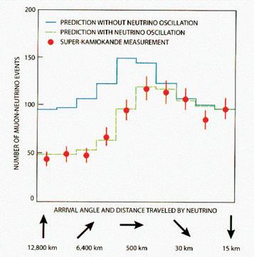 Figure 2. Comparison of models incorporating neutrino oscillation to models which do not (Source: Kajita)