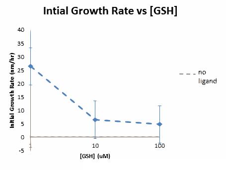 Figures 1 and 2 show the change in aerosol volume of levoglucosan-monocarboxylic acid mixtures at 35°C and 40°C for different mole fractions of levoglucosan. The mole fraction of 0 corresponds with an equimolar mixture of the six monocarboxylic acids listed previously in he procedure, and the mole fraction of 1 corresponds with a pure levoglucosan mixture. If the levoglucosan and monocarboxylic acids had no interaction with each other, then the total change in volume for the aerosol would be equal to the sum of the changes in volume of each of the components in the mixture, i.e., the sum of the change in volume of pure levoglucosan and the change in volume of pure monocarboxylic acids. With no interaction among the particles, the change in volume is not dependent on the mole fraction of the individual components and does not need to be corrected with activity coefficients. This can be seen in the graph because the change in volume for three different mole fractions is almost the same. The data collected at 35°C supports the conclusion that there is no interaction among the components in the aerosol.