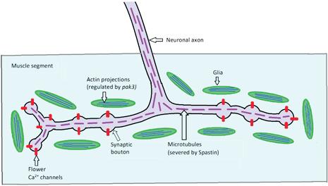 Drosophilia p21-activated kinase 3 in Glia Interacts with flower in Neurons to Regulate Synapse Structure and Function