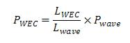 A characteristic specifically applicable to a WEC, and fundamental to the evaluation of its efficiency, is capture width, L_WEC, also termed absorption width or absorption length, which can be related, at a given frequency for an isolated body in three dimensions, to the ratio of the total mean power absorbed by the body to the mean power per unit crest wave width of the incident wave train. For an incident wave: