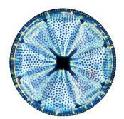 The editors have chosen diatoms as the graphic theme of this year’s publication. Diatoms, one of Earth’s first life forms, are a group of unicellular photosynthesizing algae found in aquatic environments. Distinguished by their silicon-based skeletal cell walls (frustules), diatoms take on beautiful elaborate microscopic structures. One example is the radially symmetrical shape of centric diatoms (of the class Coscinodiscophyceae), which is showcased on both covers of the publication. These pictures were generously provided by Mr. Howard Lynk of Antique Slides, who creates extensive photograph collections of natural art forms. These diatoms are also found on the side bar of our publication, which is separated by scientific discipline.