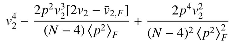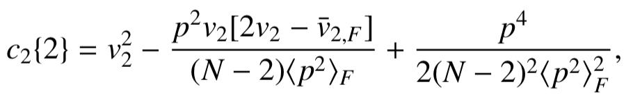 The original formulas (Bzdak and Ma, 2018) contained the variable v 2(p), which we denote for brevity v 2. In both instances, this represents the elliptic flow value at a specific momentum p. We see the 2-particle and 4-particle cumulant as a function of other variables such as transverse momentum p, number of produced particles N, and the expected value of the square of transverse momentum over the full phase space . We define