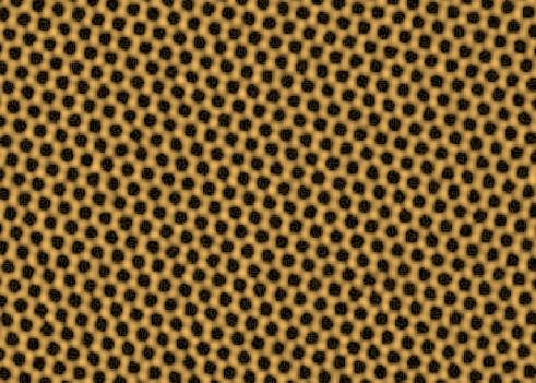 This is a transmission electron microscope image of a graphene lattice. Graphene is a periodic structure entirely composed of carbon atoms. At this scale, individual atoms can be observed at the corners of the hexagons. Image credit Ethan Minot, Department of Physics, Oregon State University (Original grayscale image colorized). Approximate Scale: 4 nanometers