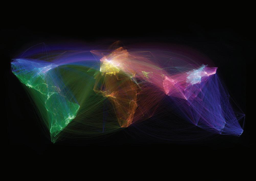 The Opte Project aims to visualize the internet by mapping routing paths from all over the world. Each color represents computers from a different region of the world. This visualization is from 2015. Image credit Barrett Lyon/The Opte Project.