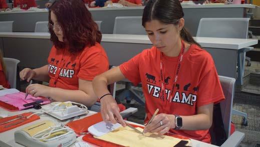 VetCAMP is a career exploration program designed for high school students with an interest in veterinary medicine. Throughout each week, 82 campers participated in hands-on activities, including experiences at the educational units, a small animal basics and suture lab, and attending an anatomy and physiology lecture followed by dissections of the heart and brain. Campers were introduced to student life at NC State through a tour of campus and the opportunity to stay in university dorms for the duration of the week. Campers also contributed to the community by donating 140 lbs. of food to the Feed the Pack Pantry and creating 80 “Adopt Me” bandanas, which were donated to WCAC and OCAS. Our Virtual VetCAMP option provided 90 campers with flexible, engaging experiences with online labs, self-guided dissections, and live sessions with veterinary professionals.