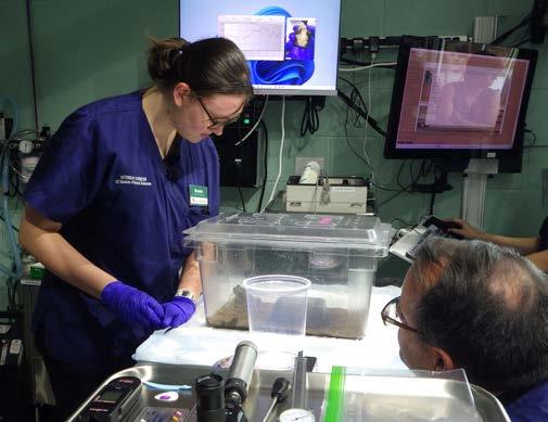 At the North Carolina Museum of Natural Sciences, Museum Medicine interns worked under the guidance of Dr. Dan Dombrowski and the Veterinary Sciences staff to support the care and maintenance of the museum’s Living Collection, which includes reptiles, amphibians, mammals, birds, fish, and invertebrates. Interns gained hands-on experience in the husbandry and medical management of exotic species and assisted with clinical sample collection for laboratory analysis. Interns strengthened their public speaking skills through the Museum’s Window on Animal Health exhibit, where they engaged with visitors during live veterinary procedures.
