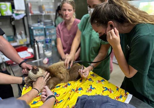 The Costa Rica Wildlife and Conservation Management study abroad program, launched in Summer 2024, offered students a hands-on experience in wildlife care and conservation. Students worked at a rescue center dedicated to rehabilitating unreleasable animals and assisted with the care of a variety of species, including sloths, coatis, kinkajous, armadillos, capuchin monkeys, macaws, owls, turtles, and lizards. Under the guidance of Dr. Shweta Trivedi and Loop Abroad veterinarians, they engaged in labs and lectures that broadened their understanding of wildlife rehabilitation. The program highlighted the daily challenges of conservation efforts and the critical role veterinarians play. Ten students opted to extend their experience by participating in a Dolphin Research week, where they engaged in hands-on research of wild dolphins and sharks in Golfo Dulce, learning research methods, tracking dolphin behavior, and contributing to data analysis and necropsy labs.
