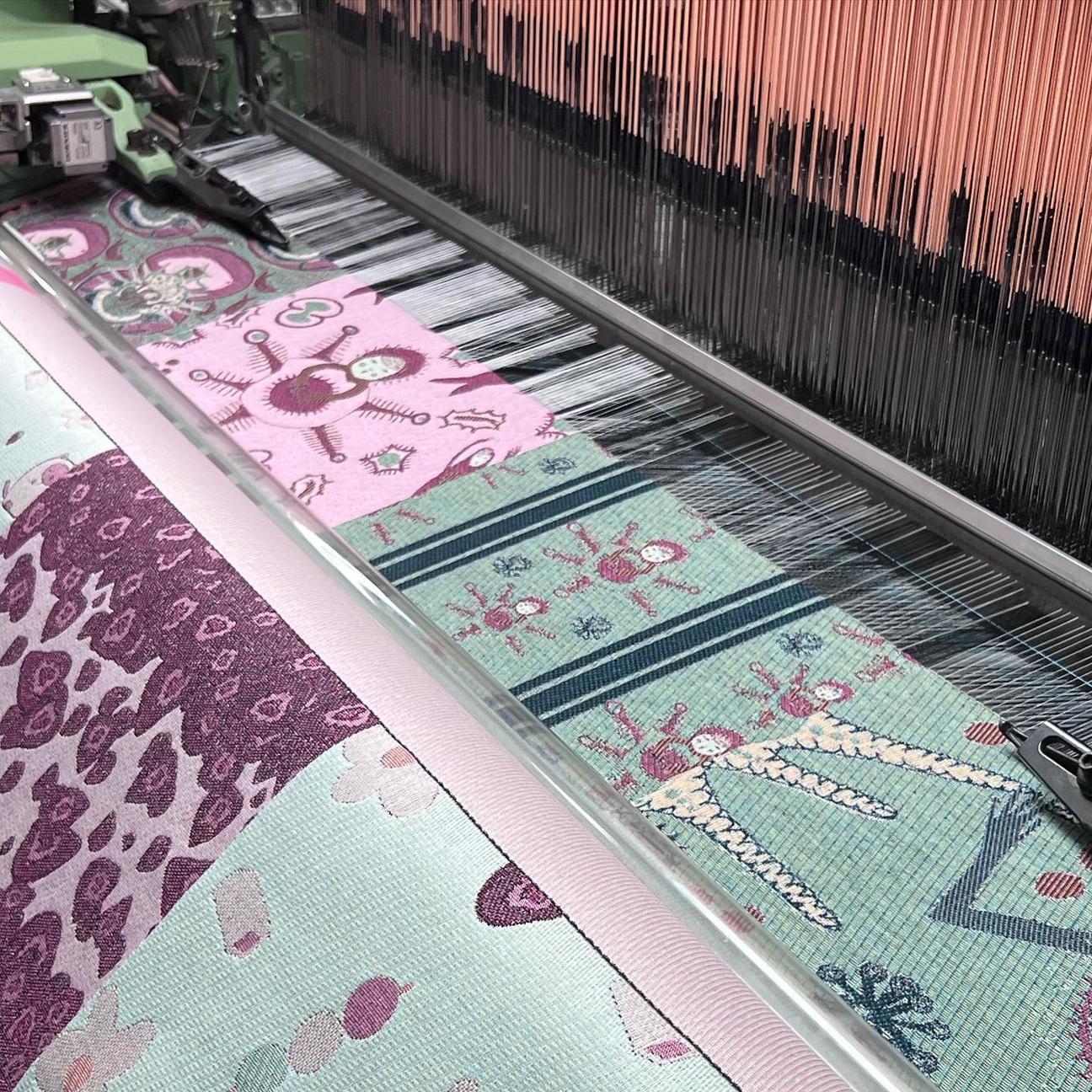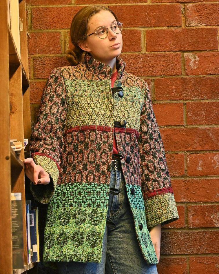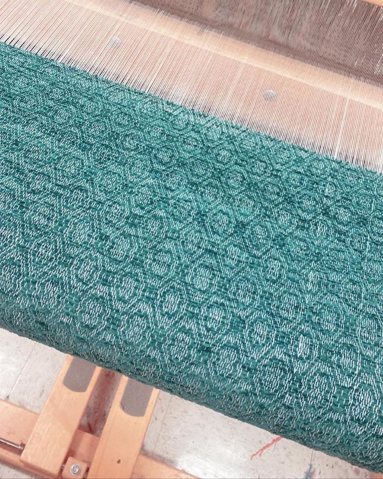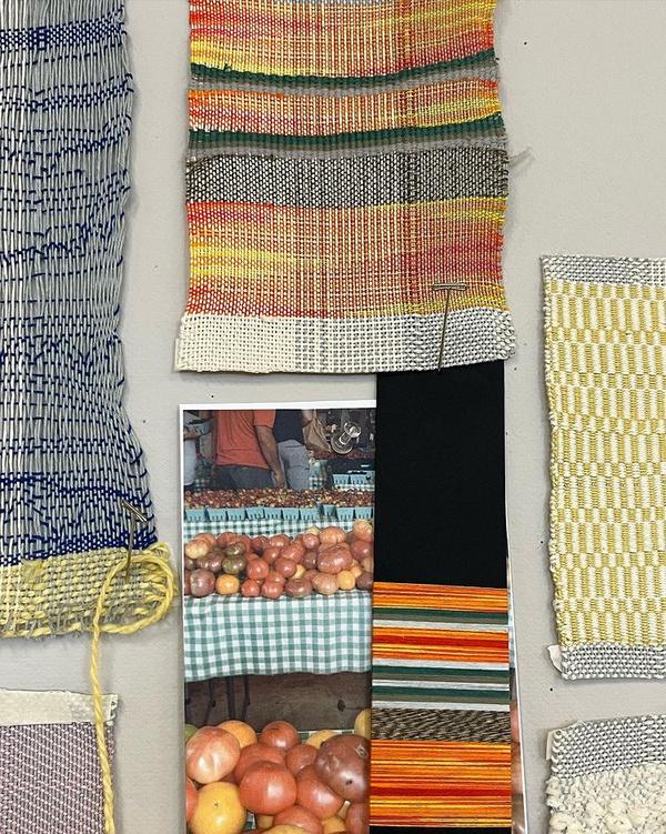 Students take an in-depth exploration of jacquard weaving. Projects in the class challenge students to create a woven fabric collection based on their design inspiration. The final project involves students presenting samples of their work from the semester, including fabric research and development. Students are encouraged to be imaginative with their samples, applying technical and aesthetic skills.