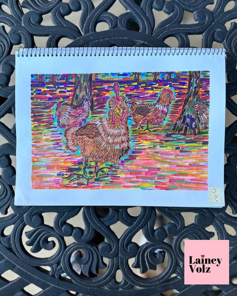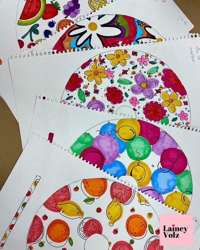 For the line project, students develop a portfolio of 25 pieces. Five subjects are drawn or painted in five different styles art.