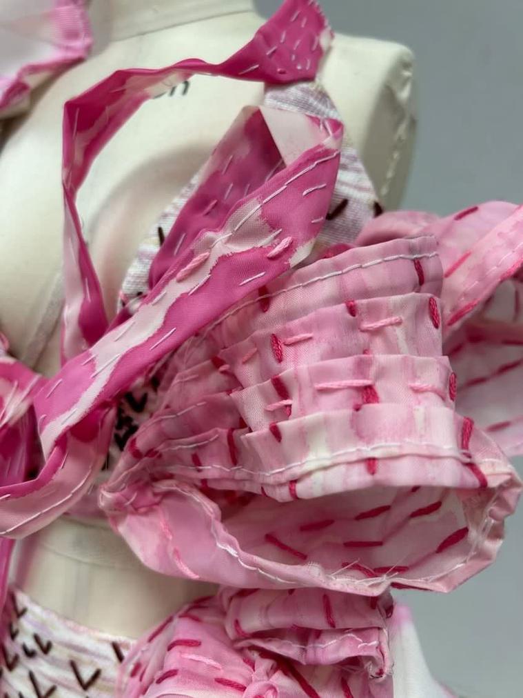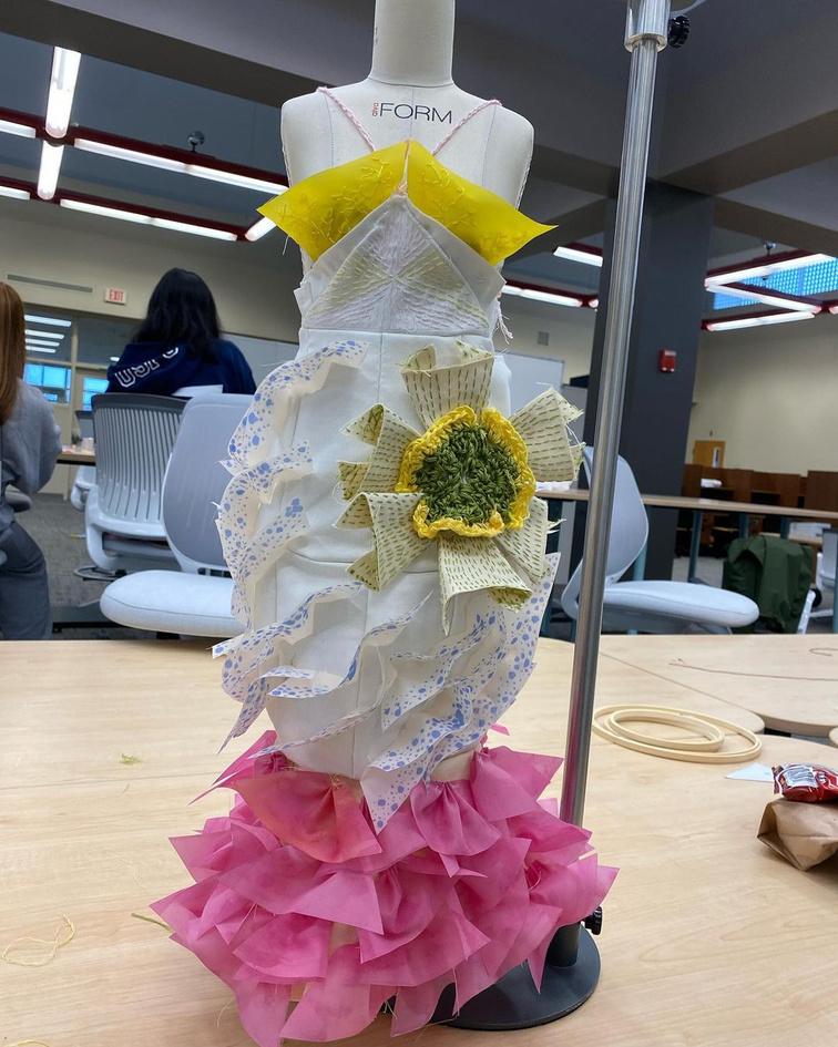 For the form project, students create avant garde garments in half scale. Designers had to incorporate 10 different shapes, as well as surface design and texture elements, into their final product.