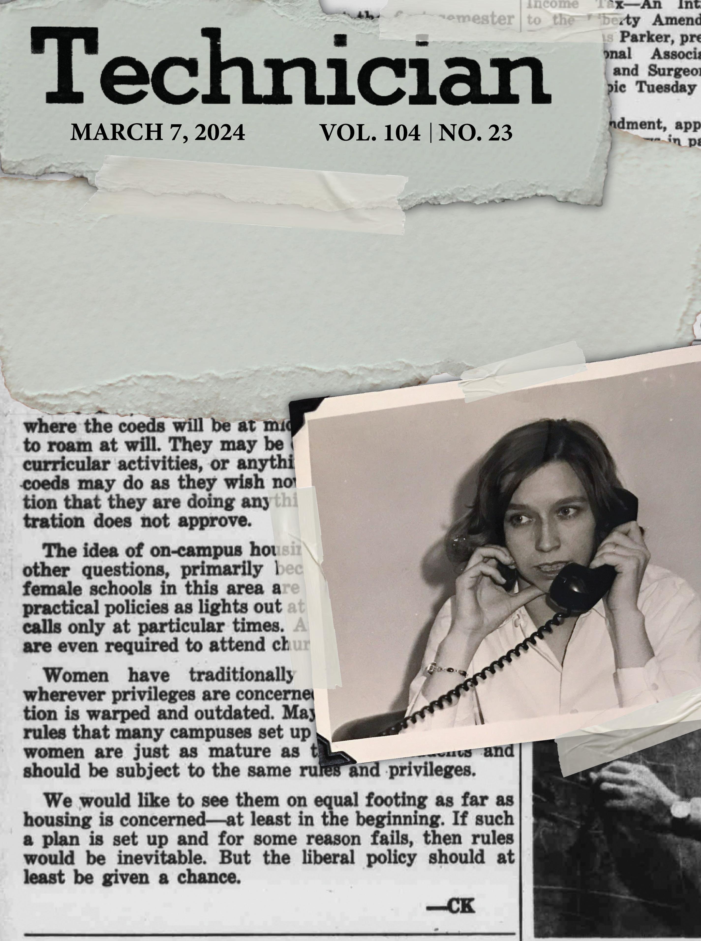 TECHNICIANONLINE.COM 2 TECHNICIAN THURSDAY, MARCH 7, 2024 Contents IN THIS ISSUE: PHOTO OF THE WEEK page 13 SPORTS NC State women’s athletics have always been the best on campus page 08 CULTURE The women who broke up Technician’s boys club page 05 NEWS The first female student athletes of NC State page 12 The commodification of girlhood OPINION THE RADAR