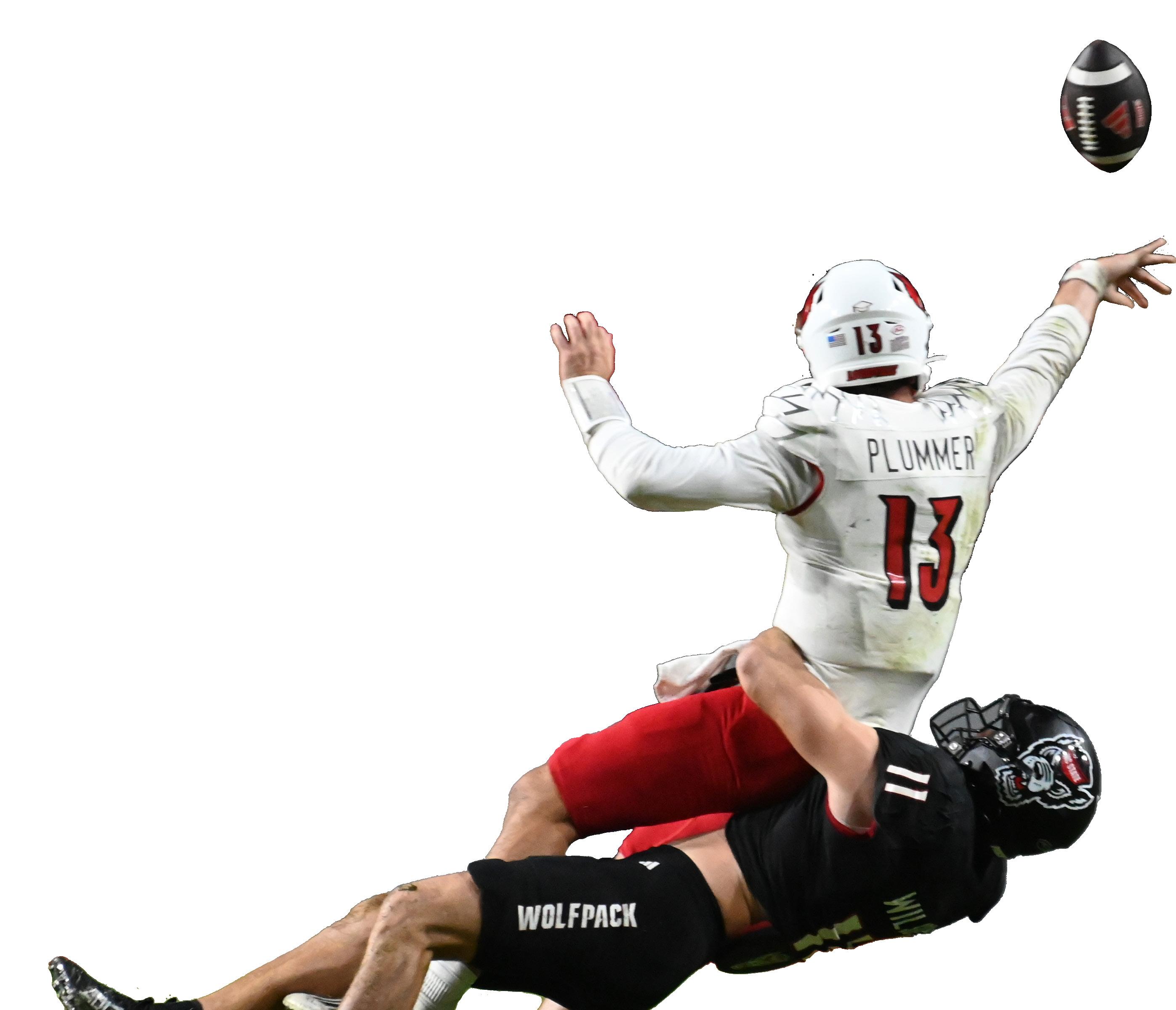 Graduate linebacker Payton Wilson tackles the Cardinals quarterback during the Wolfpack’s home football game against the Louisville Cardinals at Carter-Finley Stadium on Friday, Sept. 29, 2023. Wilson had 10 total tackles and two sacks including one strip sack. The Cardinals beat the Wolfpack 13-10.