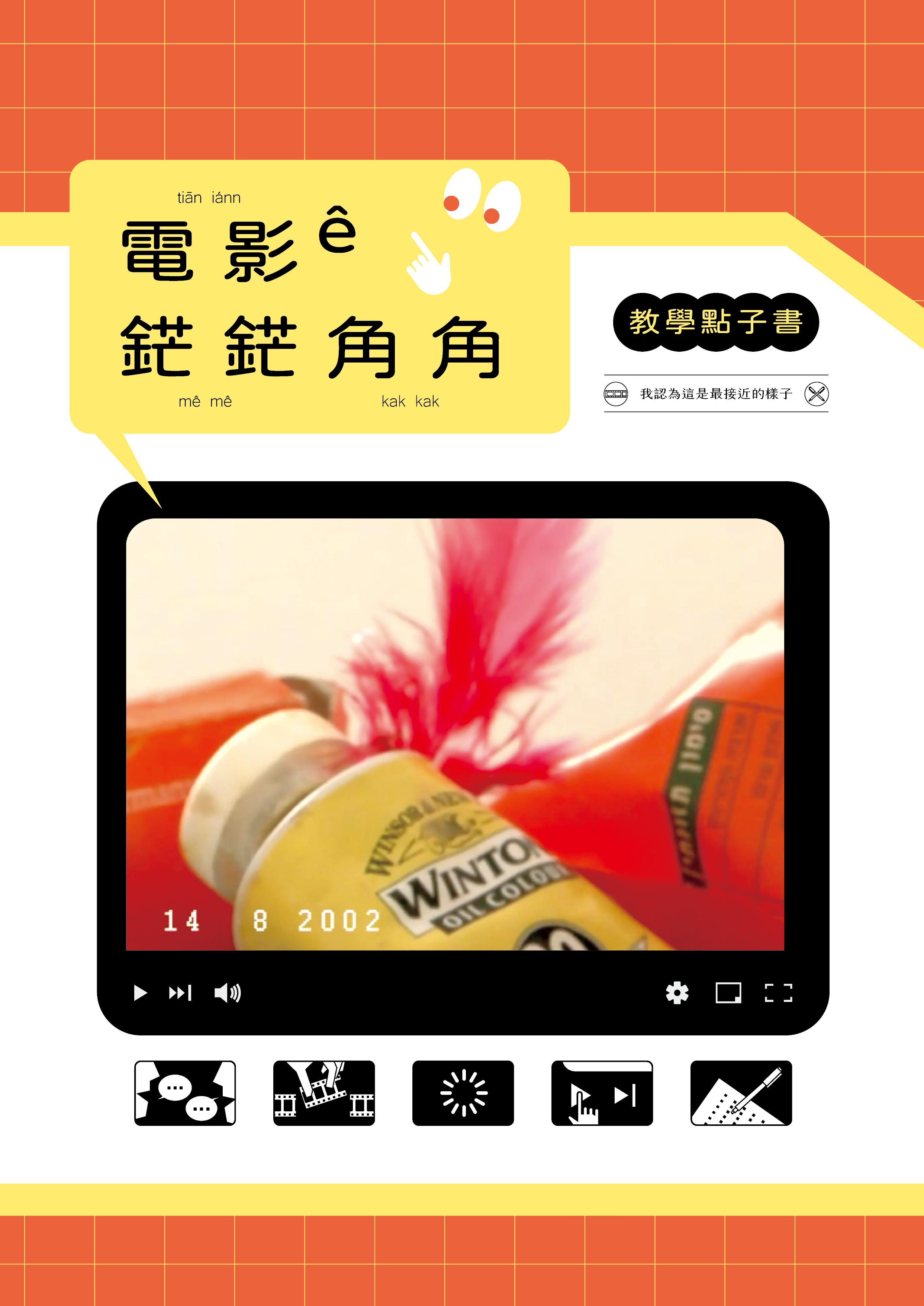 「電影ê鋩鋩角角tiān-iánn ê mê-mê-kak-kak教學點子書」以形式多樣的短片作為教學媒介,是一本提 供教學者彈性運用的影像教育教學手冊。
