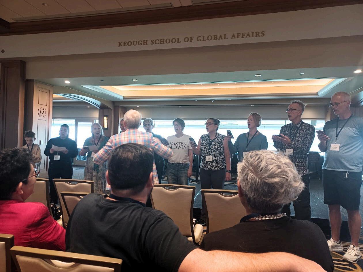 One of the most important dynamics of the MFA experience is to engage with other interesting young writers to read each other’s work, and to receive feedback and reading tips from each other In addition to the workshops and our always strong reading series, we enjoyed a host of artist occasions for artistic exchange: MFA students curated and introduced a series of films at the Browning Cinema; Program Manager Paul Cunningham organized a series of events involving the MFAs in visual art, including the Solarium Gallery Show, where the graduating art MFAs displayed their work and the writing MFAs wrote ekphrastic responses; Azareen Van Der Vliet Oloomi continued to curate her writers discussion series, Literatures of Annihilation, Exile and Resistance, while Roy Scranton continued to host EHUM (Environmental Humanities Initiative) together with MFA student Makella Brems; in connection with the release of new books from Action Books and a new issue of the Notre Dame Review, we also organized a series of panels on translation and small press publishing with visitors Katherine M. Hedeen, Víctor Rodríguez Núñez, and Aleida Rodríguez; and at the end of the year, Jericho Brown read as part of the Kelly Writers Series in the downtown South Bend library, as well as participating in an dynamic question and answer session with students. In June, Dionne Irving and Paul Cunningham co-hosted the 2025 NonfictioNOW conference at the University of Notre Dame. All of these events were based on the idea that we must constantly take in new ideas, new influences. Dylan is certainly a prime example of someone who is constantly taking in new ideas and sounds, constantly reinventing himself.