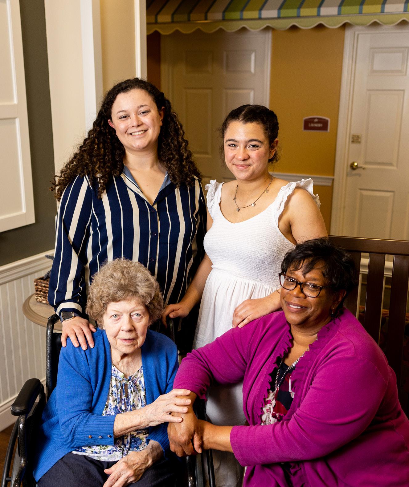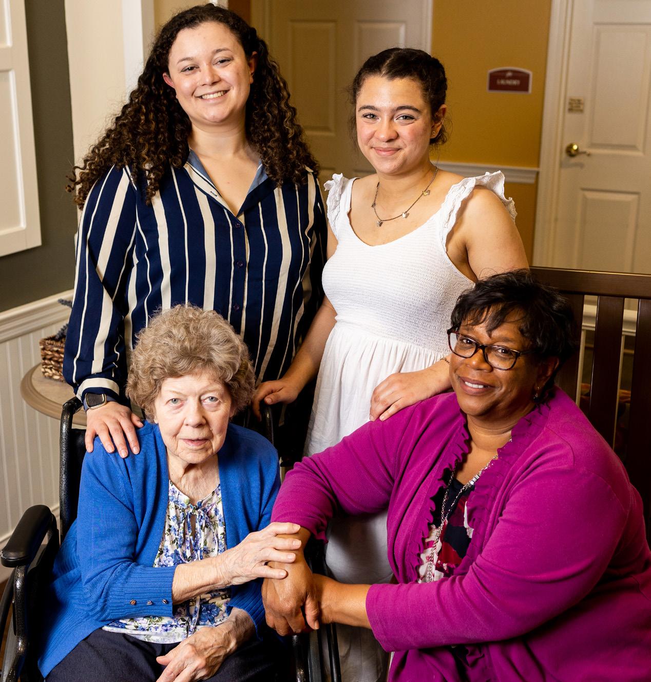 (Front) Carolyn (Pitzen) Jones ’56 and Angela (Miller) Jones ’83 (Back l to r) Morgan Jones ’14 and Maia Jones ’23