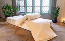 Luxe van thuis Veel mensen denken dat je een goede slaap zak of een extra dik dekbed nodig hebt om in de winter te kunnen slapen, maar dat blijkt on nodig. ‘Ik gebruik gewoon hetzelfde dekbed als thuis’, zegt Scheepers lachend. ‘Mensen denken altijd het dat superkoud is, maar die hebben een verkeerde voorstelling van winter kamperen.’ Scheepers noemt haar camper niet voor niets ‘een hotel op wielen’. In minder geïsoleerde busjes is het aan te ra den je bed in laagjes op te maken. ‘De kou komt van beneden’, legt Van de Weijer uit. ‘Als je het vanonder maar warm genoeg maakt en je een extra deken over je slaapzak legt, is er niets aan de hand. En het is ook wel charmant om het iets minder luxe te hebben.’