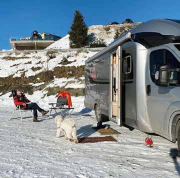 Het hele winterseizoen heen-en-weer Marjan Scheepers (60) kampeerde eerst ruim dertig jaar, samen met haar man Jo, met een caravan die de hele winter op een vaste plek in Oostenrijk stond. Nu rijden ze een paar keer per jaar op-en-neer met een gloednieuwe camper. Ze kopen een skipas voor heel Tirol, waarmee ze een half jaar lang overal kun nen skiën. ‘Meestal gaan we half december, na sinterklaas, die kant op. We blijven twee of drie weken, soms een maand. Dan gaan we weer naar huis.’ Ze rijden steeds heen-enweer tot het winterseizoen afgelopen is. ‘Als we zin hebben, trekken we die kant op. En als we het beu zijn, gaan we weer naar huis.’