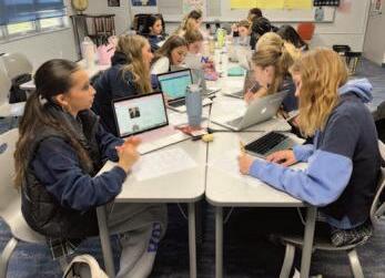 Upper School students continue their research journey in grade 9 through projects like the Japanese American Internment project in World Literature or Ancient Greece & Rome Research Papers in English. In 10th grade, the Critical Lens Project, which includes an 8-10 min presentation, as well as lessons on the Canterbury Tales and the 10th Grade Research Paper, help students think more deeply and thoughtfully, refining and honing their writing and research skills and expanding their source catalog. Eleventh grade lessons, including The Roaring Twenties and the 1960s and 1970s project in US History, the Genetics Disorders project in Honors Biology, or the Social Justice Project in Catholic Morality enhance students’ writing, citing, and presentation skills.