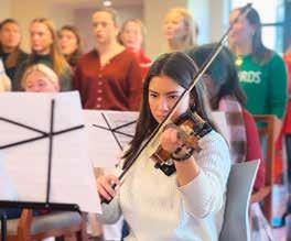 Upper School students who are passionate about vocal performance audition for Notre Dame’s Women’s Chorale. The Women’s Chorale performs frequently both on and off campus and travels to vocal competitions. Upper School instrumentalists have a wide range of options to pursue, from the auditionbased Instrumental Ensemble to beginner opportunities such as Beginning Ensemble, as well as Piano and Guitar learn-to-play courses. In addition, upperclasswomen have the opportunity to take AP Music Theory, a college-level course for students interested in a deeper, theoretical understanding of the music they perform.