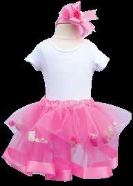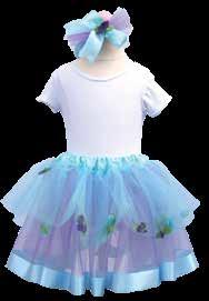 Gowns and leotard available in sizes: 2-4, 4-6, 6-8. Gowns are fully lined. Elastic waistband tutu skirts and fascinators are one size. Made in the USA. Hand wash recommended.