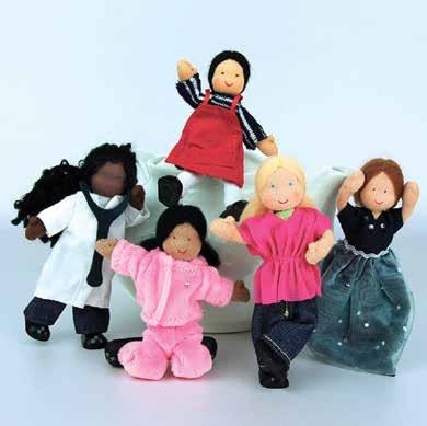 Our dollhouse dolls are handmade in Europe of soft, eco-friendly materials. They can be flexed to sit, stand or be posed in many different ways. In traditional Waldorf style, each cotton face is uniquely hand painted. Mom and Girl dolls are dressed in changeable outfits. All dolls sold separately so you can create your own unique family.