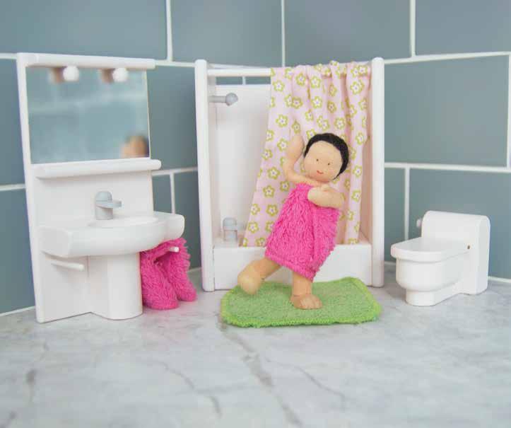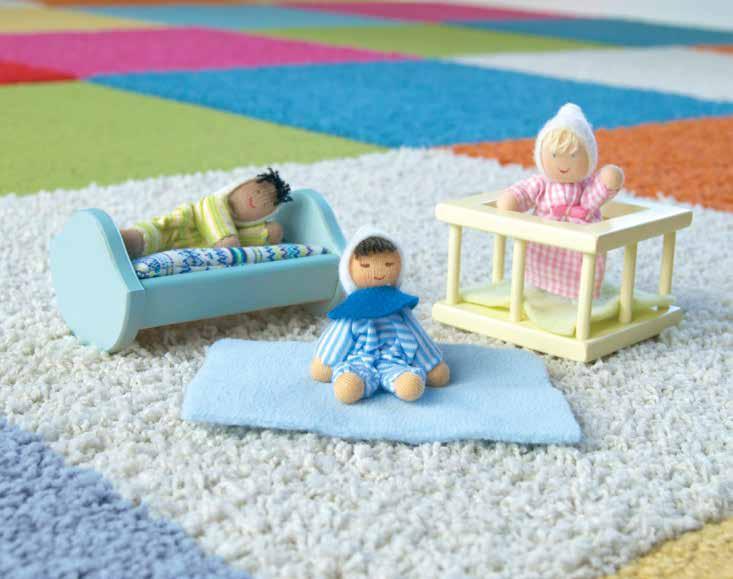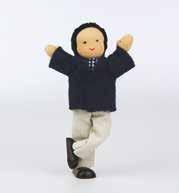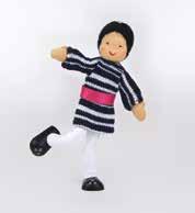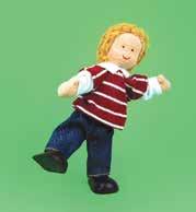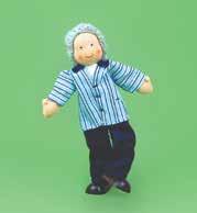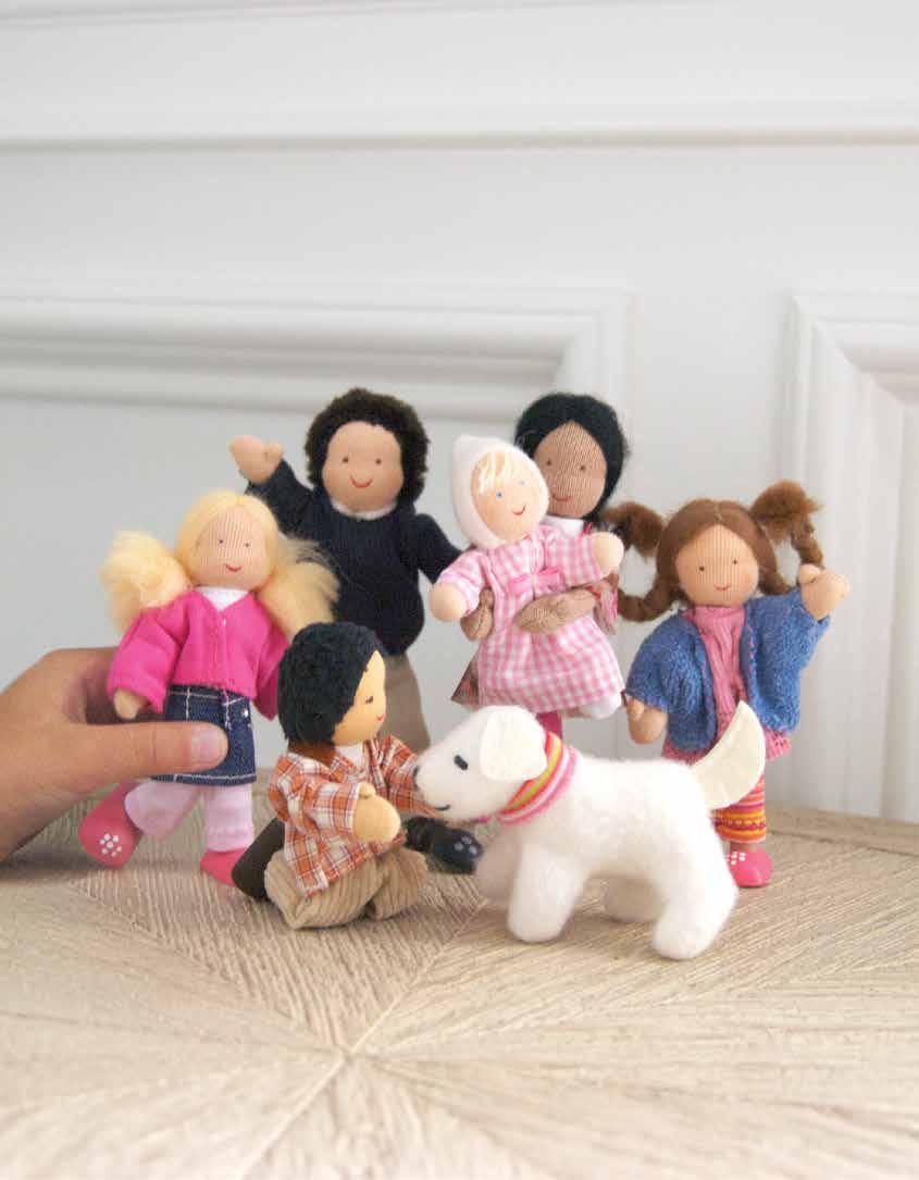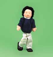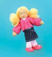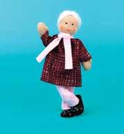 Our dollhouse dolls are handmade in Europe of soft, eco-friendly materials. They can be flexed to sit, stand or be posed in many different ways. In traditional Waldorf style, each cotton face is uniquely hand painted. Mom and Girl dolls are dressed in changeable outfits, except tight leggings on any dolls are not removable. All dolls are sold separately so you can create your own unique family. Girl and boy dolls are 4" high. Mom, dad and grandparent dolls are 5" high. r ! (1) $16.50 EACH