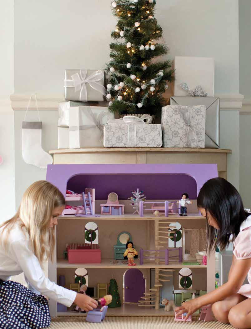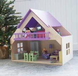 A wooden dollhouse you can make your very own. Pick from 9 different roof and house color combinations to coordinate best with your decor. Open on all four sides for play, it features six rooms and one set of stairs. Painted to show natural wood grain. Handmade in Germany of wood harvested from sustainable forestry. Adult assembly required. Measures 25"W x 22.5"D x 24"H. r ! (1) $250