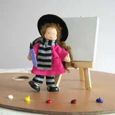 Includes doll with removable beret and paint brush, wooden easel and blank 3x3" canvas. Doll is 4" high. r ! (1)