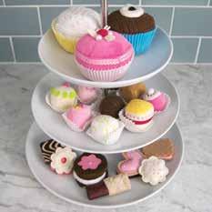 Includes 9 assorted petit fours in paper cups. Made of velour and cotton/polyester. Each piece measures about 1.25." r ! (1)