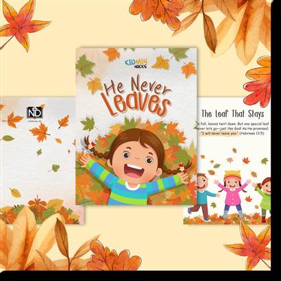 A fall-themed printable for toddlers and preschoolers that teaches the simple truth that God is always near. Through coloring and easy Bible activities, little ones discover the promise of Deuteronomy 31:8—Hewillneverleaveyou.