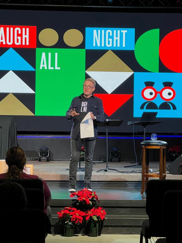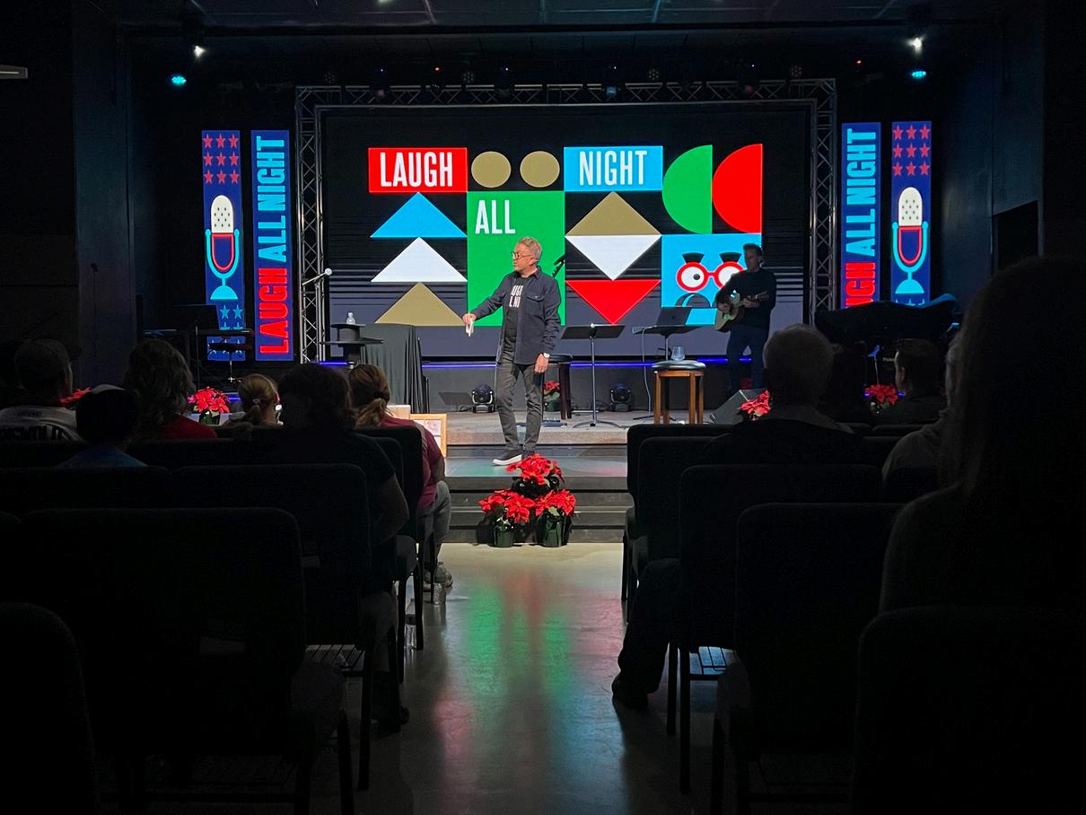 November 22, DeLand, Florida –The next stop for the Laugh All Night Christmas Tour was at DeLand Nazarene. This time it was just me & Tim DeTellis. But so great being with Pastor Peter again! Peter was the Youth Pastor at a church in Lakeland, Florida when I was in high-school backinthe90's.Laughsabounded!