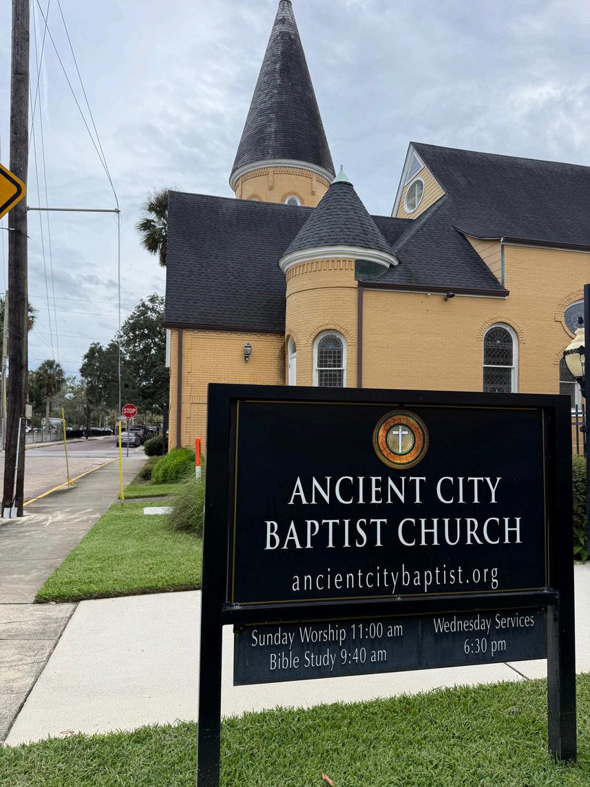 October 19, St. Augustine, Florida Just a day later we continued the tour at Ancient City Baptist in the heart of America's Oldest City. It was a rainy, stormy night! But the people were hospitable and it was a joy to introduce them to the work of New Missions.