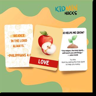 Colorful, easy-to-use cards that help kids learn and live out Galatians 5:22–23. Each card highlights one fruit with a simple verse and real-life action step— making faith practical, memorable, and shareable.