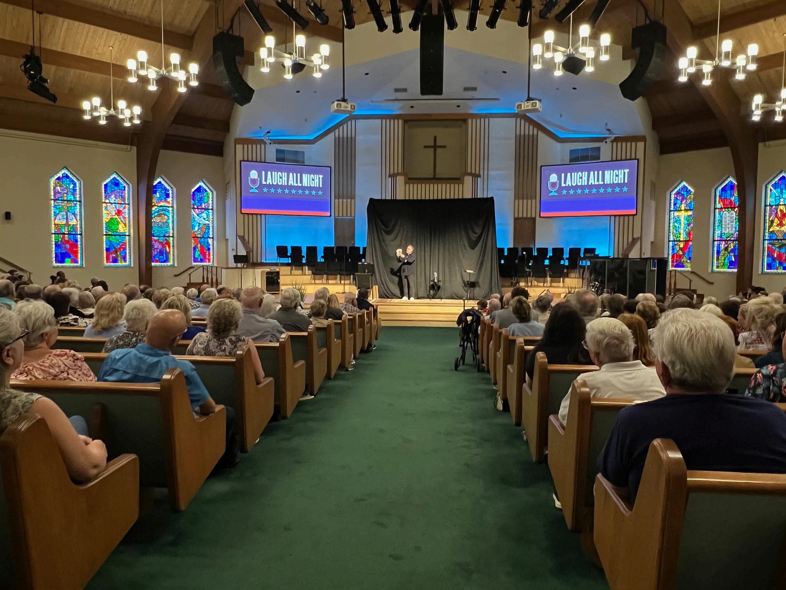 August 17, Mount Dora, Florida This was a great evening! We brought Laugh All Night to my own church, First Baptist. I along with Ric Roberts and Tim DeTellis, shared laughter with friends & fans. Thank you FBMD family for supporting vitalwork!