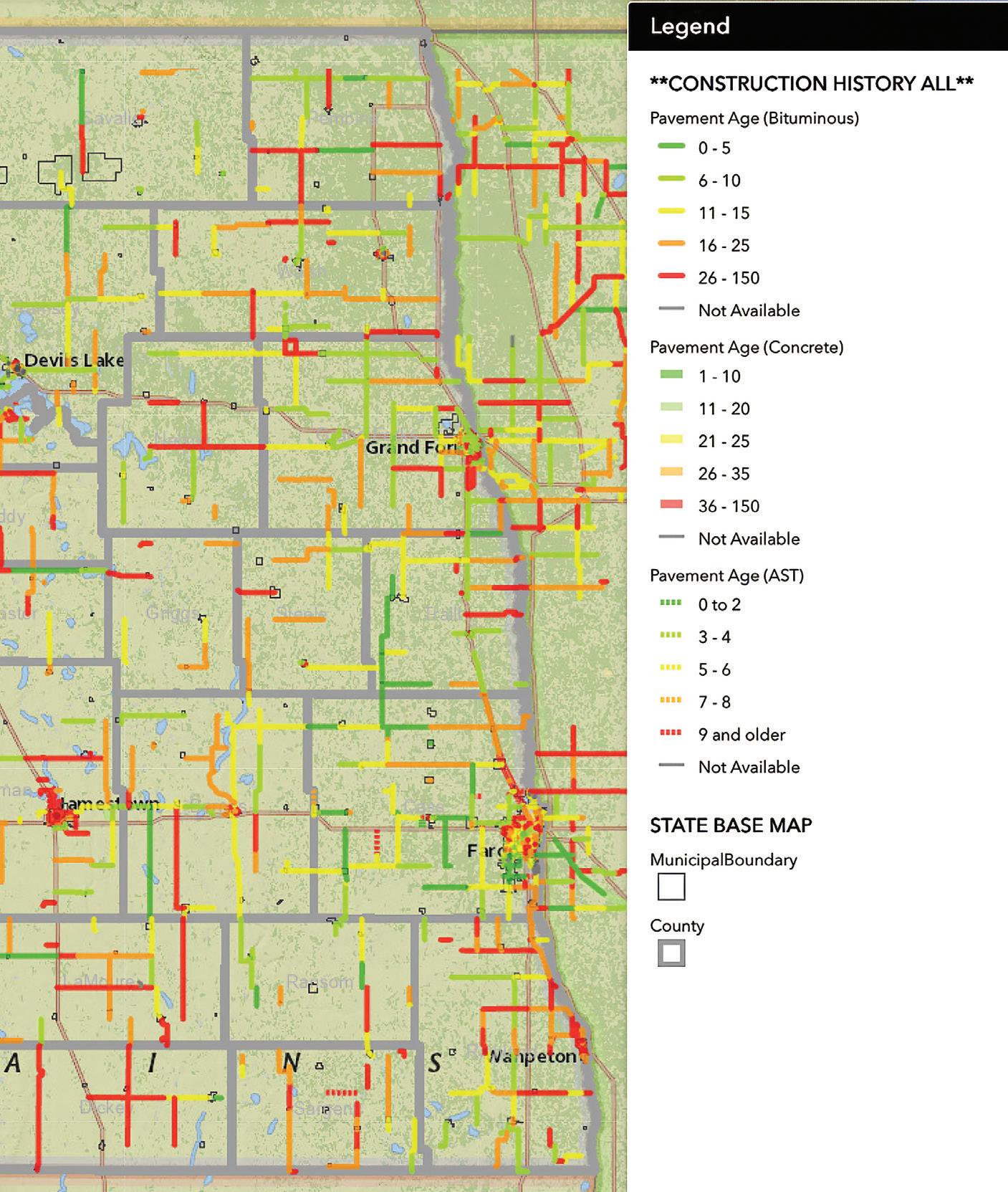 How about a map that tracks the age of the pavement on county and state roadways? The Upper Great Plains Transportation Institute (UGPTI) has one available on its website, and it’s a tool the institute has developed to stay on top of the wear and tear on the state's roads and bridges.
