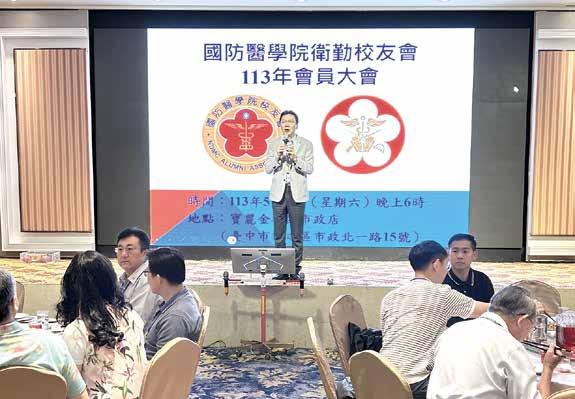 113.5.4晚間,衛勤校友會於臺中舉辦年會,特別感謝來自各地的校 友踴躍參加。據悉,外島的金門、澎湖,後山的宜蘭、花蓮、臺東校友, 均不辭辛苦,兼舟車勞頓 趕來聚會,席開17桌令人 感動。張克士會長特別到 場致詞,並代表總會、北 區、中區,各致贈禮金一 萬元。更謝謝可敬、可愛 的學長、學弟、同學們! 咱們,明年再見!