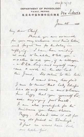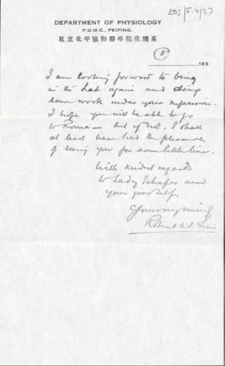 校史探索 A Glance into the Past 005 林可勝1932年給恩師沙佩謝弗的手書