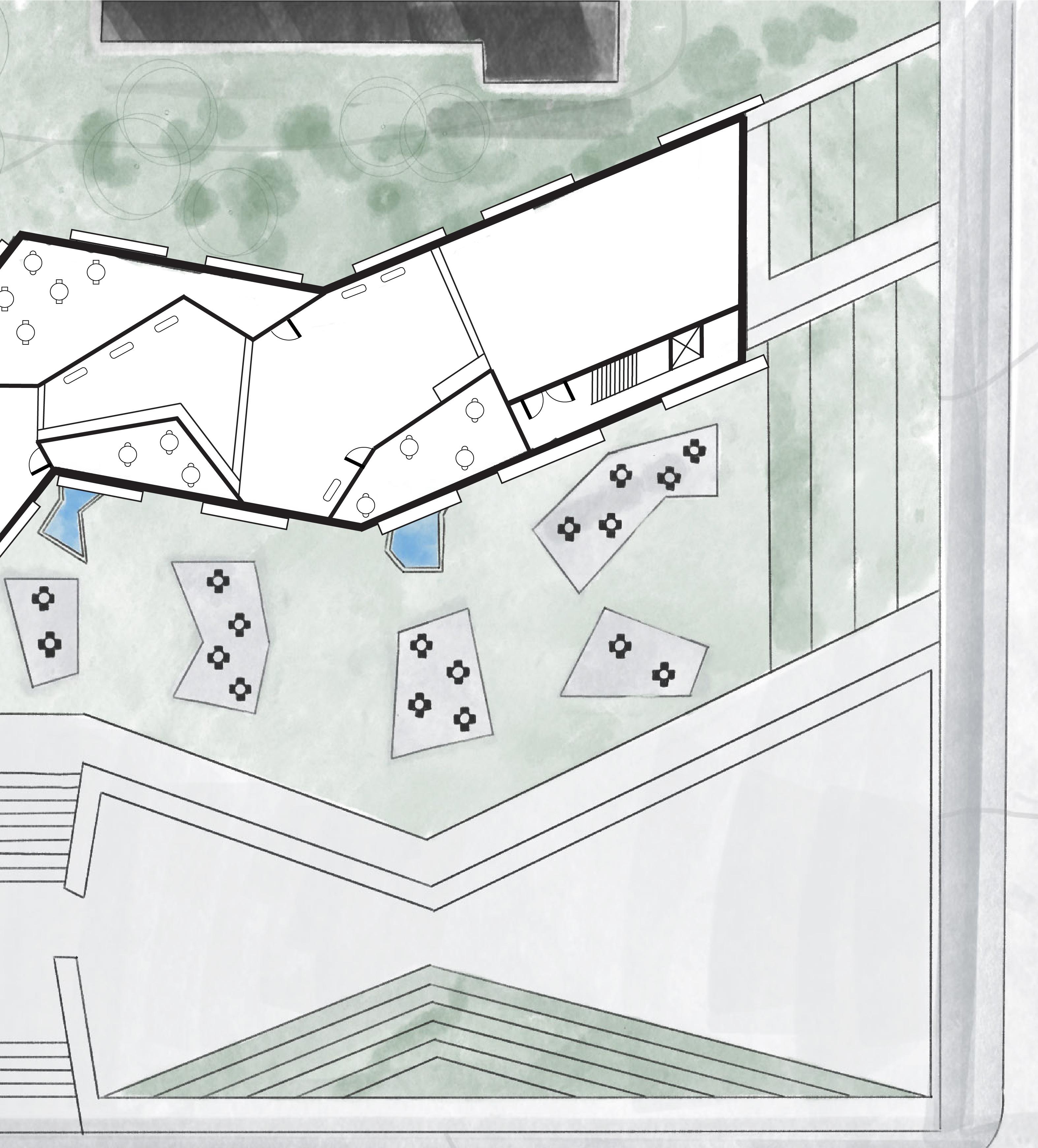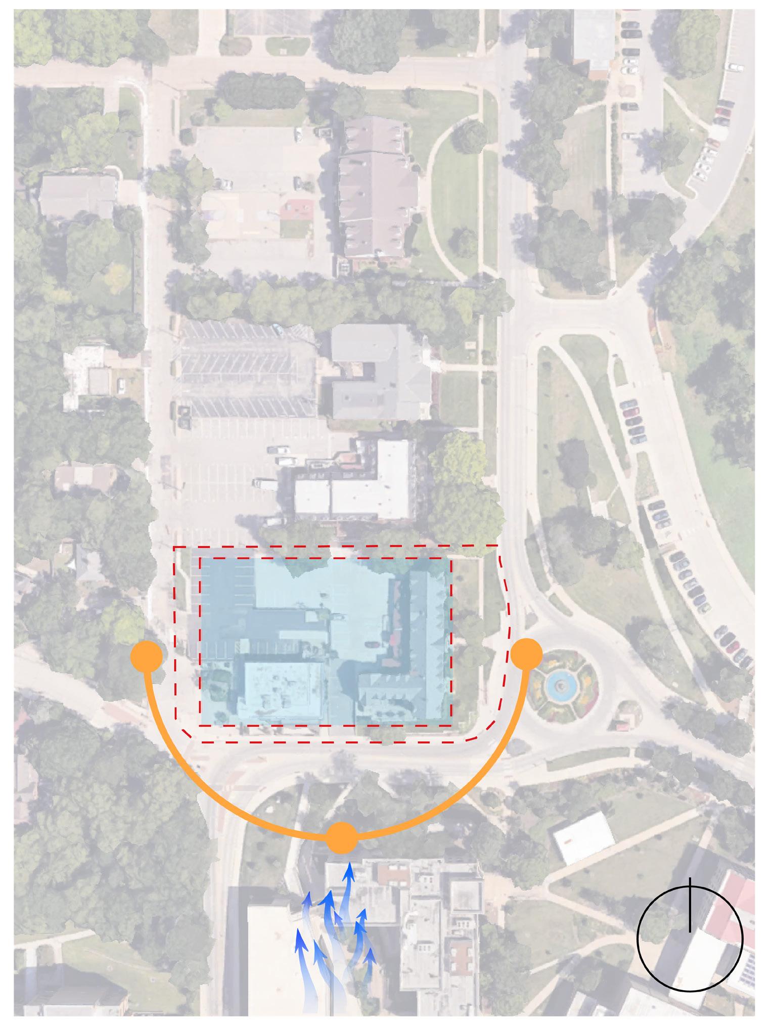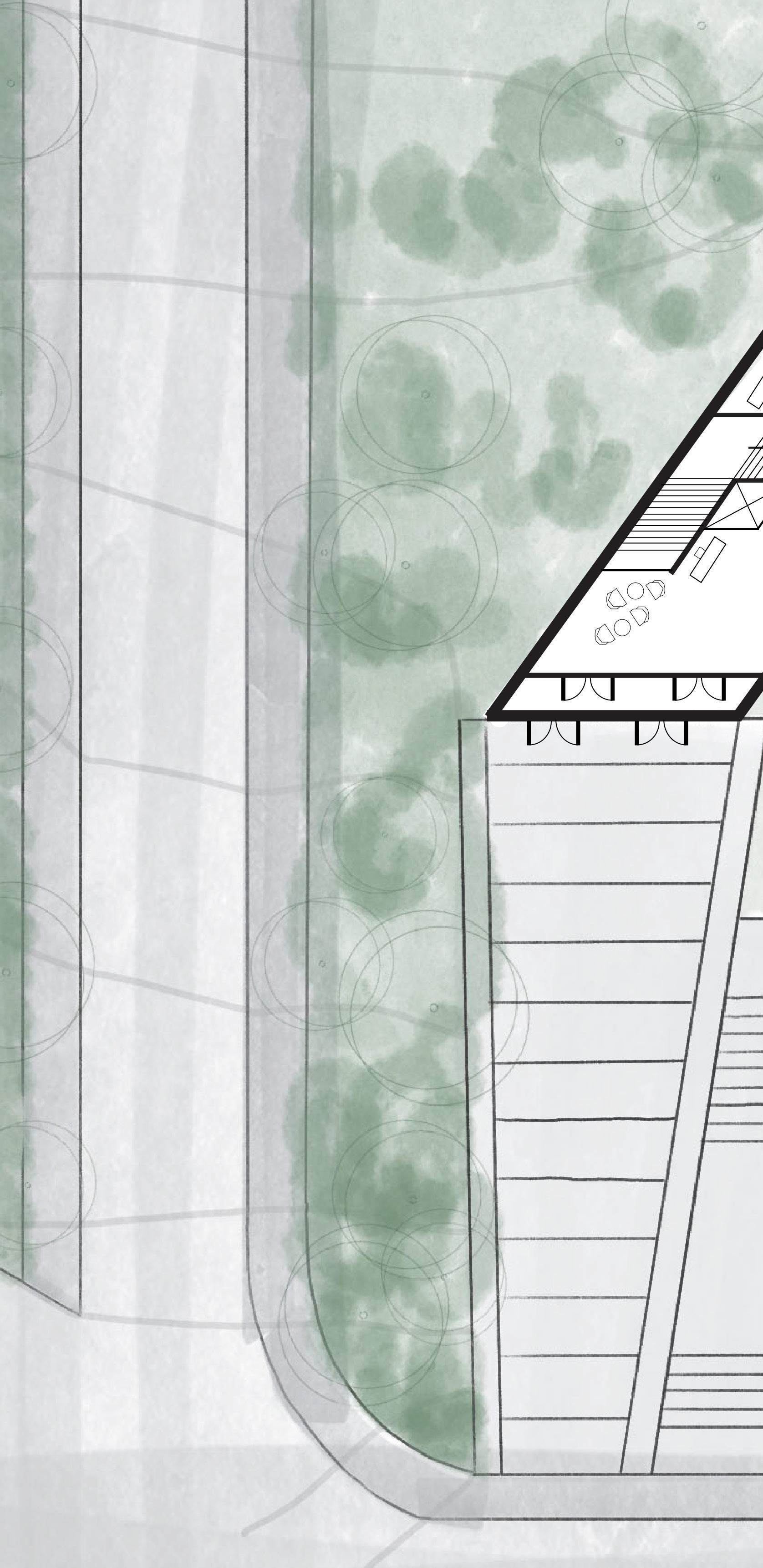 My site analysis extended beyond the Campanile. I considered how my chosen building would interact with the surrounding landmarks. Specifically, focusing in on the entrance from Naismith Drive a gateway that would welcome visitors, students, and alumni alike. Finally, I envisioned a view from the Campanile, gazing into the distance a perspective that encapsulated KU’s legacy and future.