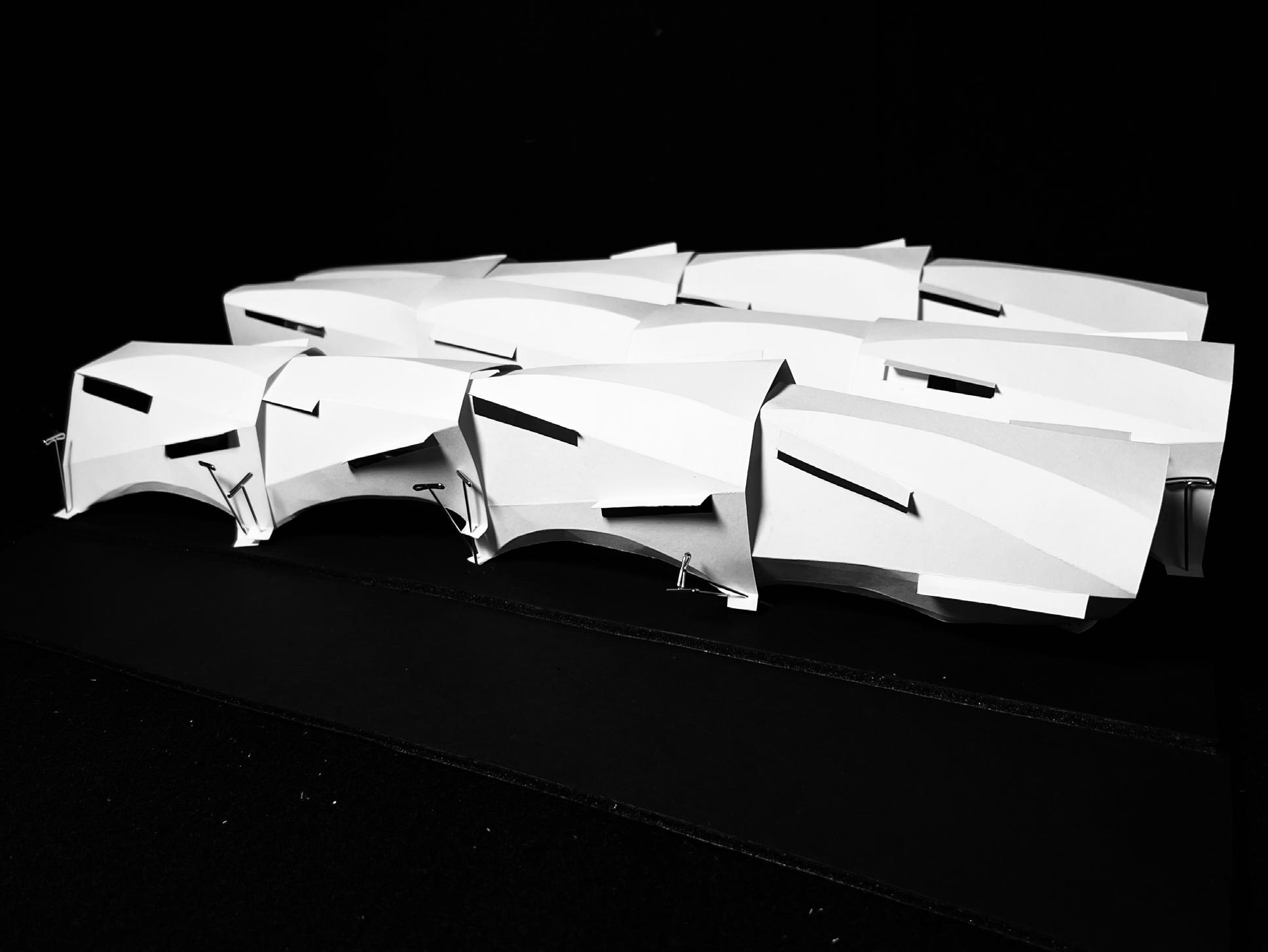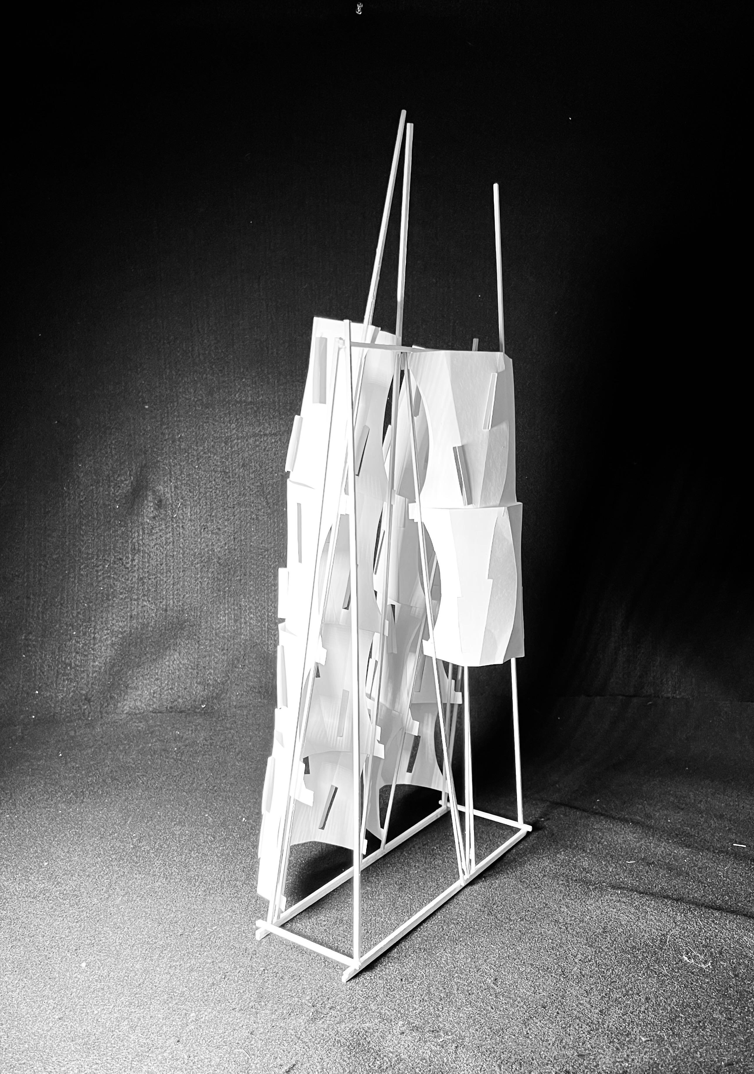 For the wall system, we had to conduct study on a building that we were allowed to utilize before making a single sheet model. Following the modeling and finalization of the single sheet’s given form, the wall system was formed, with an emphasis on lighting, rhythm and creating a cohesive whole as a structure.