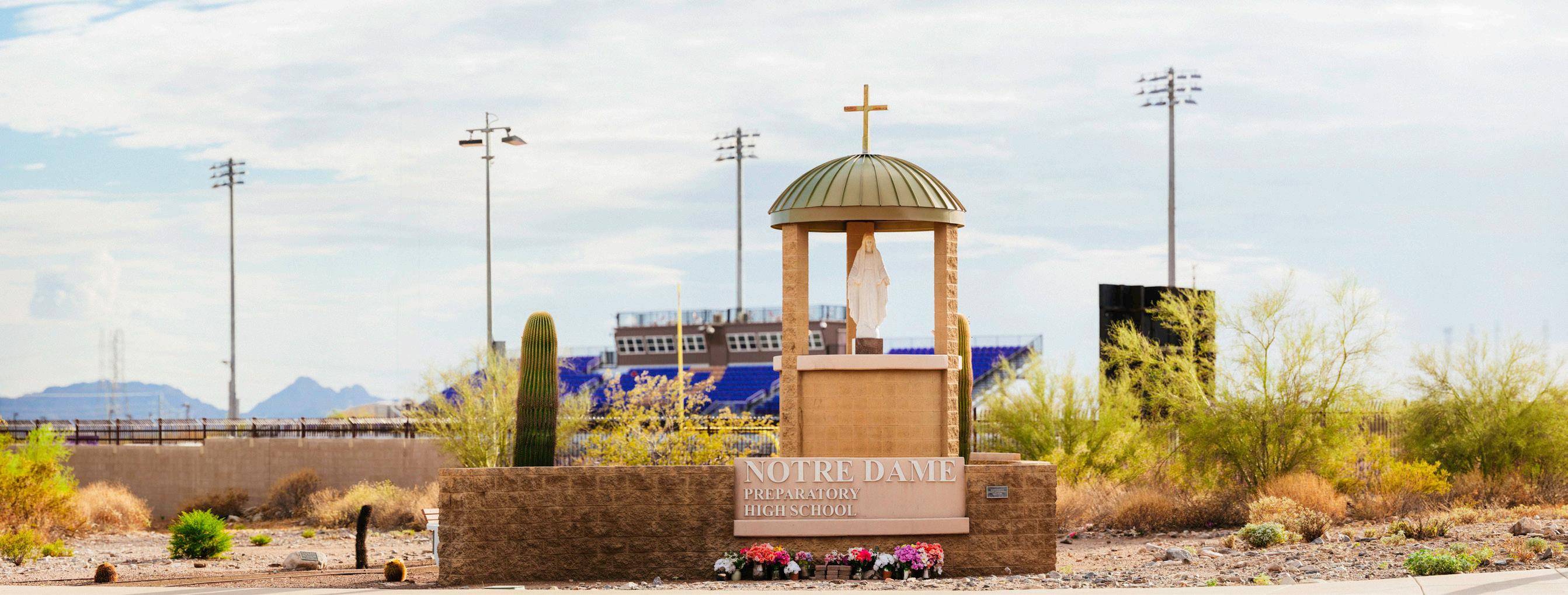 Notre Dame Preparatory, a Diocesan Catholic High School, was founded in 2002 by a group of committed citizens who wanted to bring a Catholic high school to Scottsdale. With the help of the Diocese of Phoenix, NDP was able to secure a bond to purchase a private elementary school campus. This campus has grown to encompass a gymnasium, chapel, two-story classroom building and stadium complex. Most recently, NDP opened the St. Catherine of Bologna Performing Arts Center (PAC).