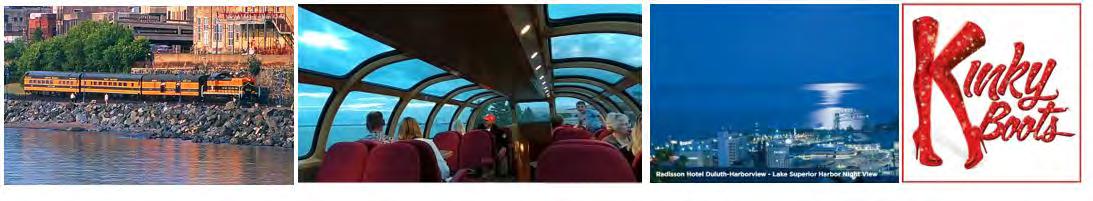 Enjoy the sights and sounds of Duluth, MN with this July 20-21, 2023 summer getaway package. This package includes a two-night stay at the Radisson Hotel Duluth-Harborview (July 20-21, 2023), two tickets to the Duluth Playhouse "Kinky Boots" on Thursday, July 20 and two train tickets on the North Shore Scenic Railroad. Kinky Boots is based on a true story of a family's struggling shoe factory and a way to help the business recover. The North Shore Scenic Railroad is a 6-hour excursion up the North Shore with a stop for lunch, shopping and touring. Snacks & two beverages are included on the train. Relax each evening at the beautiful Radisson Hotel-Duluth, with breathtaking views of the Duluth Harbor. Treat yourself to this lovely, romantic getaway this summer! Package also includes a $300 gift card for dining, at a location of your choice.