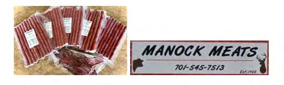Enjoy these delicious beef sticks and jerky from Manock Meats--located in Great Bend, ND. Flavors may include: dill pickle, jalapeno & cheese, or barbecue.