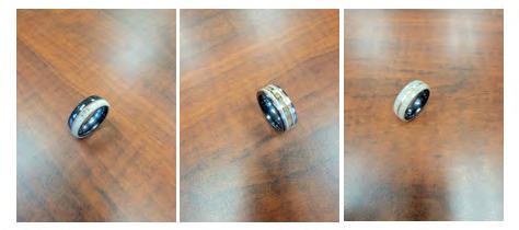 This one-of-a-kind, personalized, ceramic and deer antler ring is undeniably "cool" and unique. The ring is sourced from naturally shed antler and a variety of other materials. The grain of the antler varies, giving every ring a different look. Heavy grain gives the look of depth and contrast with lots of variation in the striations. Grain has a multitude of colors as well; grays, browns, blacks, and even some rust colors can show through naturally. The winning bidder will get to customize their ring to their specifications and sizing.