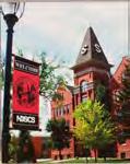 The iconic "Old Main" building on the North Dakota State College of Science campus shines brightly for all to see in this stunning photo. Canvas print measures 16"x20".