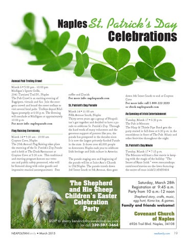 The Shepherd and His Sheep Children’s Easter Celebration Party Free swimming at RSVP to sherry.kendrick@covenantnaples.com or call 239-597-3464 River Park Aquatic Center NEAPOLITANfamily • March 2015