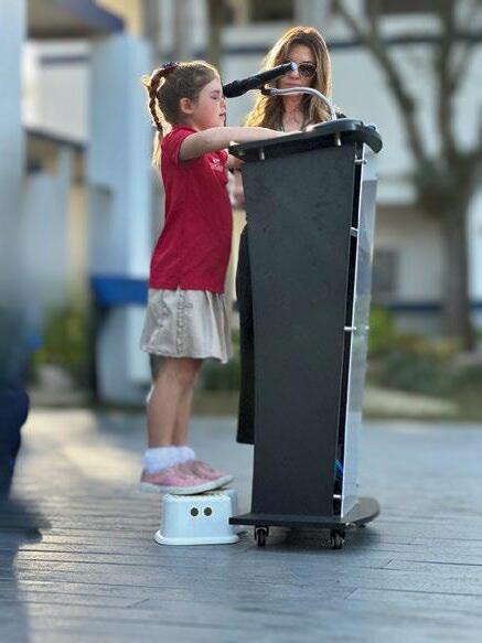 greeting children at the car drop-off line.