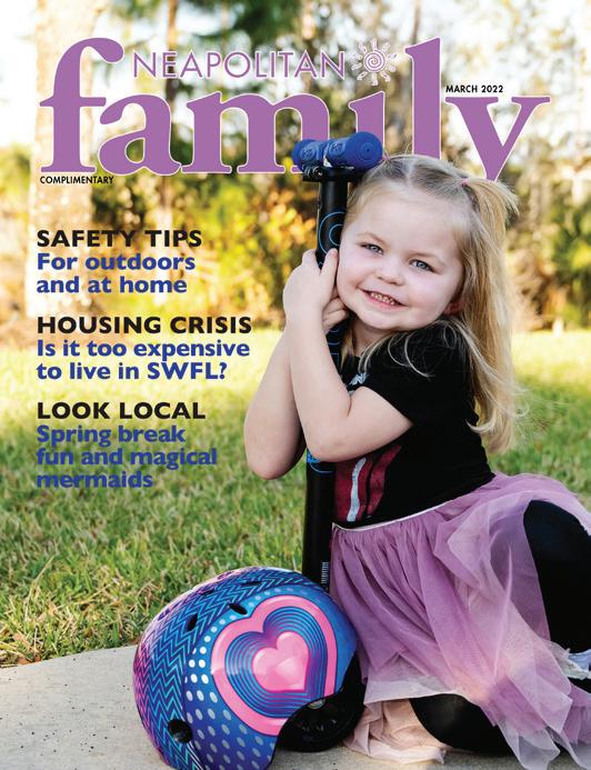 Editorial submissions are welcome. We reserve the right to edit, reject, or com ment editorially on all material con tributed. We cannot be responsible for return of any unsolicited materials. Articles and advertisements in Nea politan Family do not necessarily reflect the opinion of the publisher nor does the publisher assume responsibility for statements made by our advertisers or editorial contributors. Acceptance of advertising by Neapolitan Family does not constitute an endorsement of the products, services, or information. We do not knowingly present any product or service that is fraudulent or mislead ing in nature. Neapolitan Family is avail able free of charge at distribution points throughout Collier County, as well as digitally at https://neafamily.com. Nea politan Family is ©2022 by Neapolitan Family Publishing LLC. All rights re served. Reproduction in whole or part without written permission is strictly prohibited.