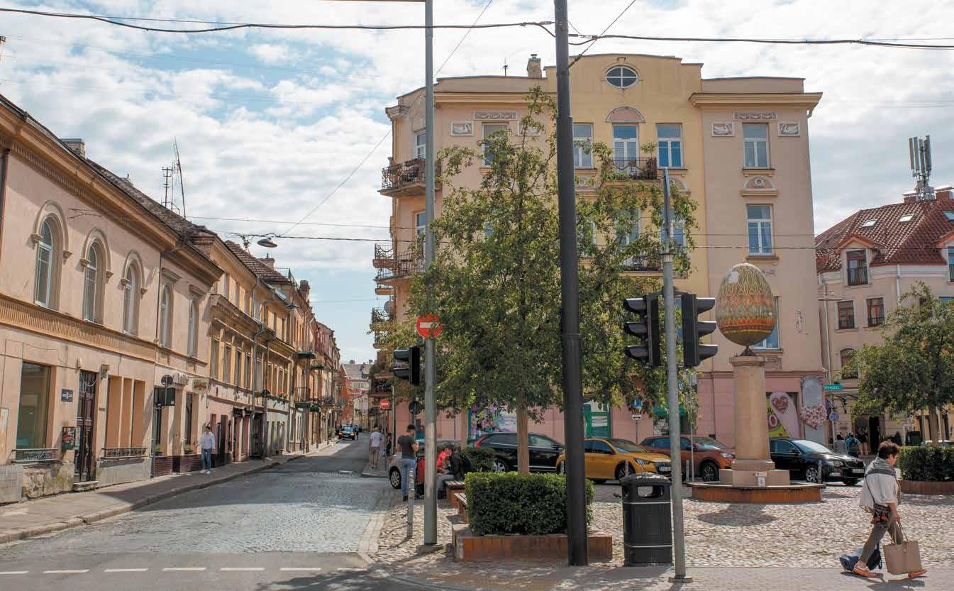Laukdamas klientų, jis kartu su kaimyne, „Vidos boutique“ savininke Vida, sėdinėja ant pagalvėlių vitrinos palangėje, gurkšnoja kavą, kalbasi su praeiviais. Juokais ją vadina grožio gatve: kasdien ja vaikšto daug stilingų asmenybių, veikia trylika kirpyklų ir grožio studijų. O anksčiau čia buvo liūdnoka. „Ten, kur dabar „Drogas“, pastatas su gulbėmis, devintajame dešimtmetyje veikė gastronomas „Nemunas“, – rodo Vida. – Mūsų sienos buvo