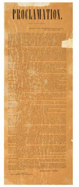 403. [Benjamin Butler Civil War Broadside], dated “Headquarters Department of the Gulf, New Orleans, May 1, 1862” and signed in print “Major General Butler. By Command of Geo. C. Strong, A.A. Gen., Chief of Staff.”, 22.3/4 in. x 8 1/2 in.